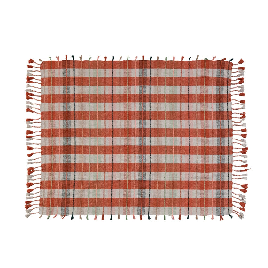 60"L x 50"W Woven Recycled Cotton Blend Throw w/ Plaid Pattern & Braided Fringe, Multi Color