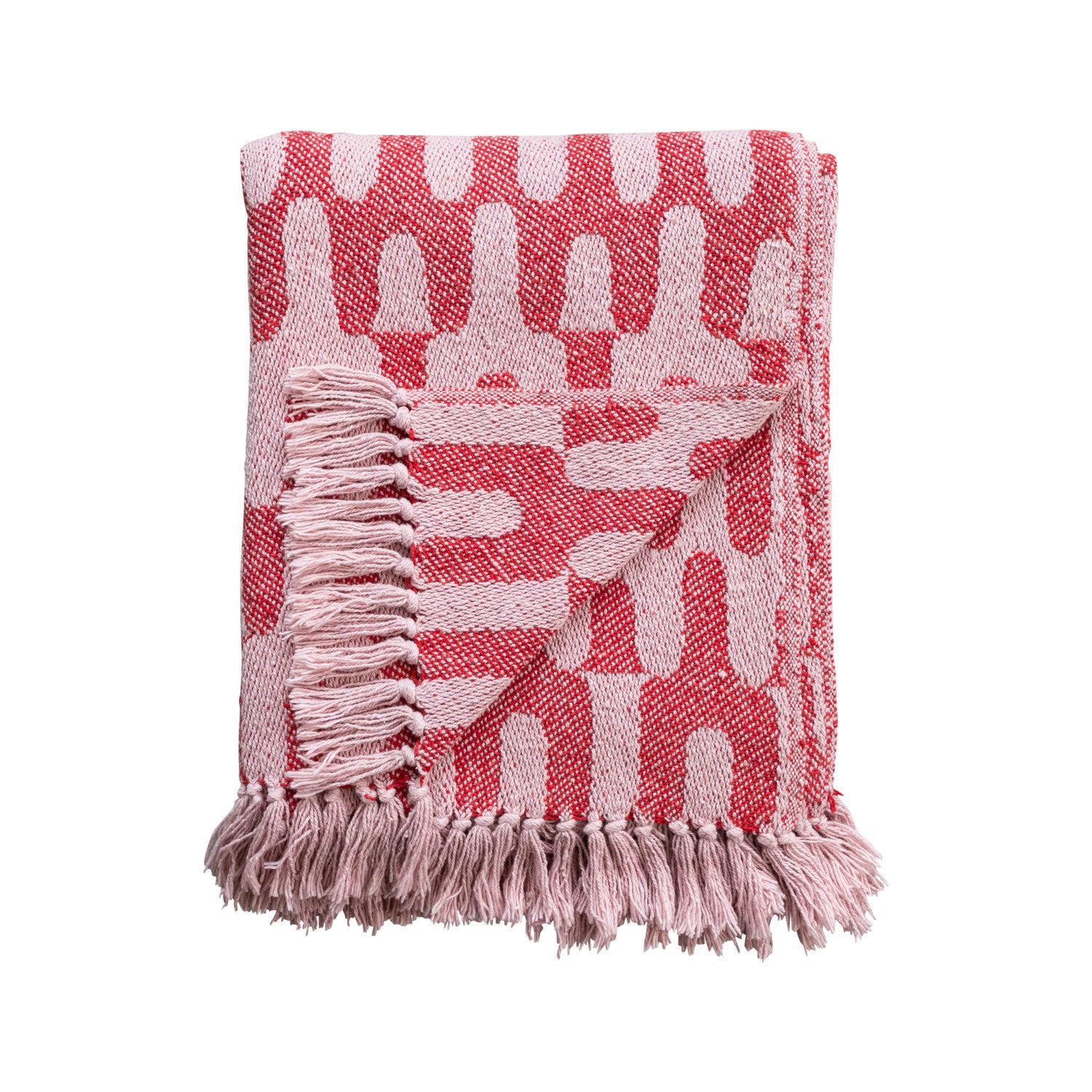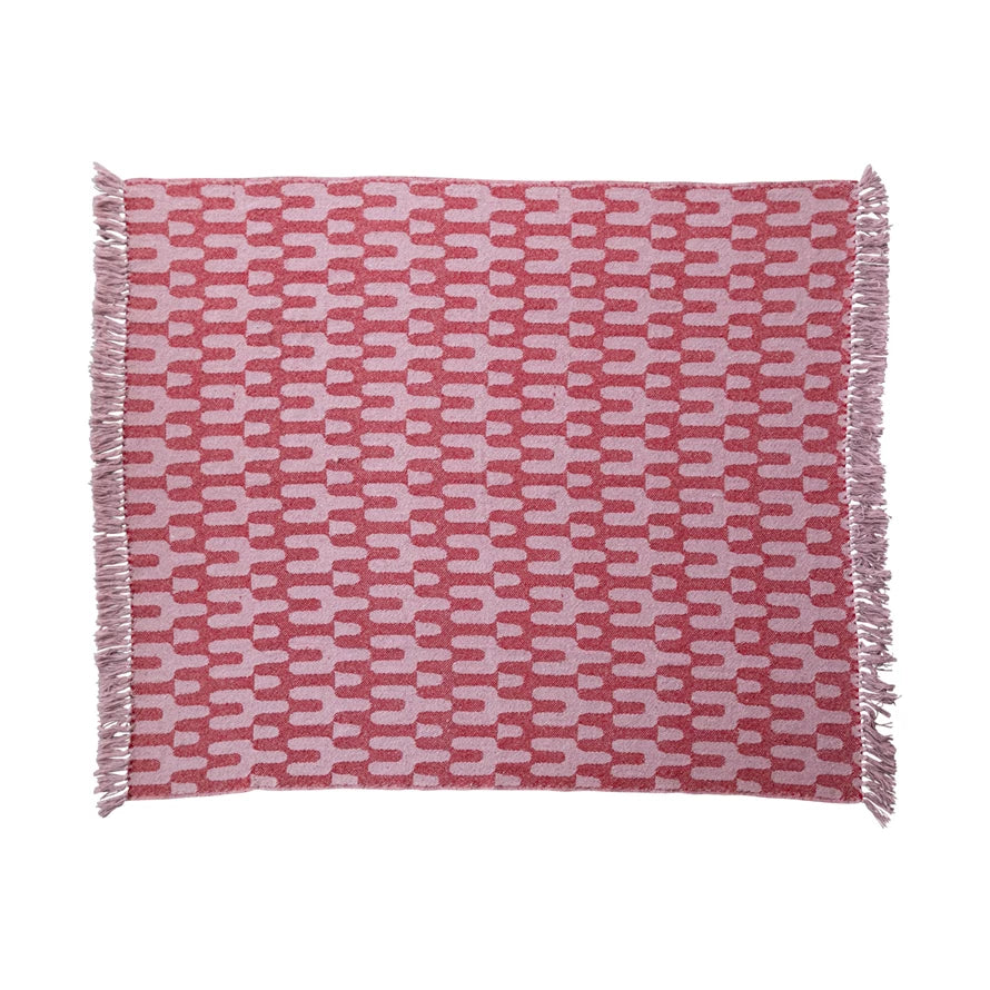 60"L x 50"W Woven Recycled Cotton Blend Throw w/ Pattern & Fringe, Red & Pink