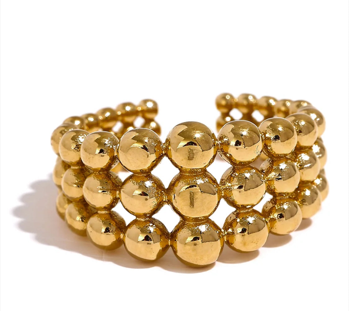 <head><meta charset="UTF-8" /></head>Beautiful triple beaded ring in gold. Adjustable fits sizes 7-9. Gold plated