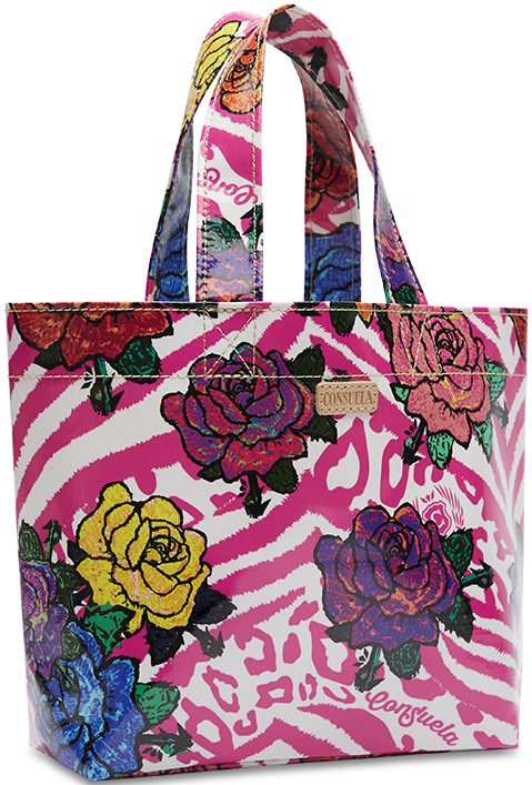 The Mini Bag was made for the little moments- carrying keys and a snack for a walk on the beach, lunch and a cold brew to the office, or for waiting patiently in the car, folded neatly under your seat. This bag made of easy-to-clean ConsuelaCloth™ is the smallest of our colorful utility totes.