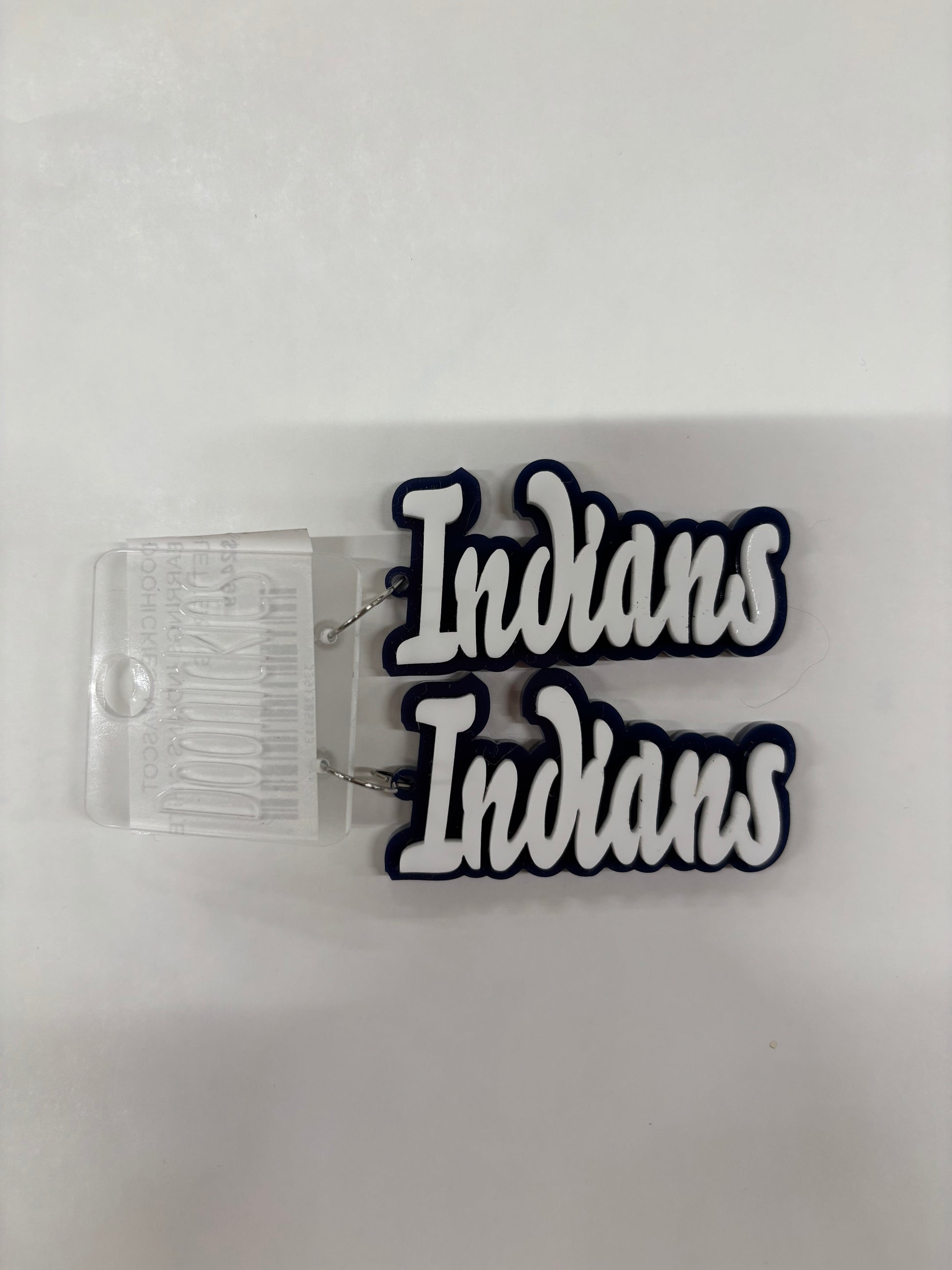 DOOHICKIES- MASCOT EARRINGS INDIANS WHITE LETTERING