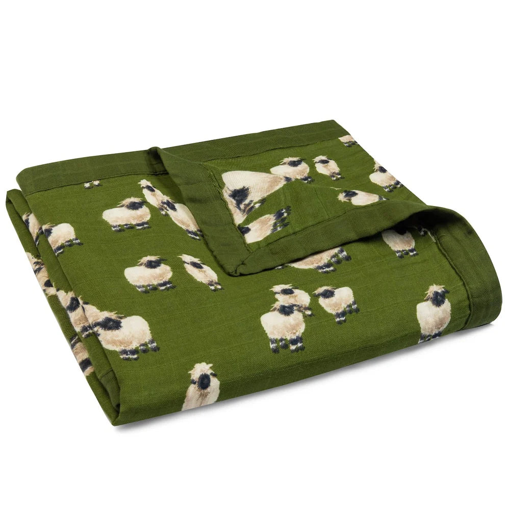 The ultimate in comfort, our generously sized Big Lovey Muslin Blanket in the Valais Sheep print allows for extra snuggles and cuddles.