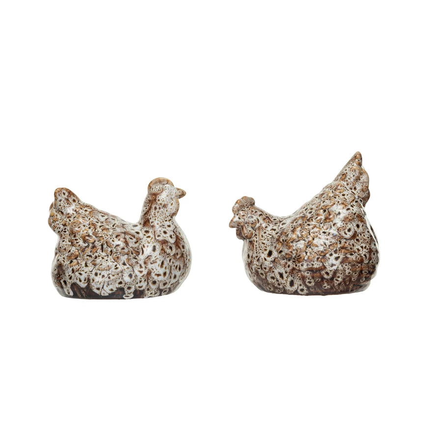 4-1/4"L x 3-1/2"W x 3-1/2"H Stoneware Hen, Reactive Glaze, Brown, 2 Styles (Each One Will Vary)