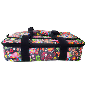 - Holds a standard 9" x 13" x 3" pan or lidded casserole dish